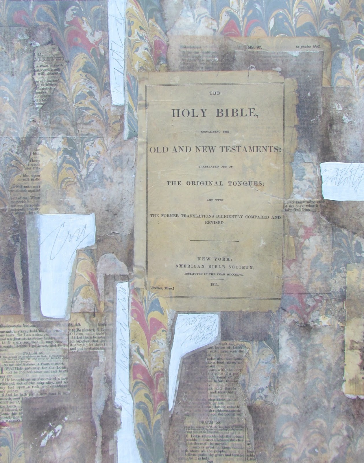 The draft from yesterday bothered me a lot so I have spent one more day adjusting values by removing some of the darker values with a stiff brush and rubbing alcohol in addition to adding more rice paper. Today I am satisfied that I can now deal with the lettering. Notice that the shapes are much more identifiable and you can see the range of values from light to dark.